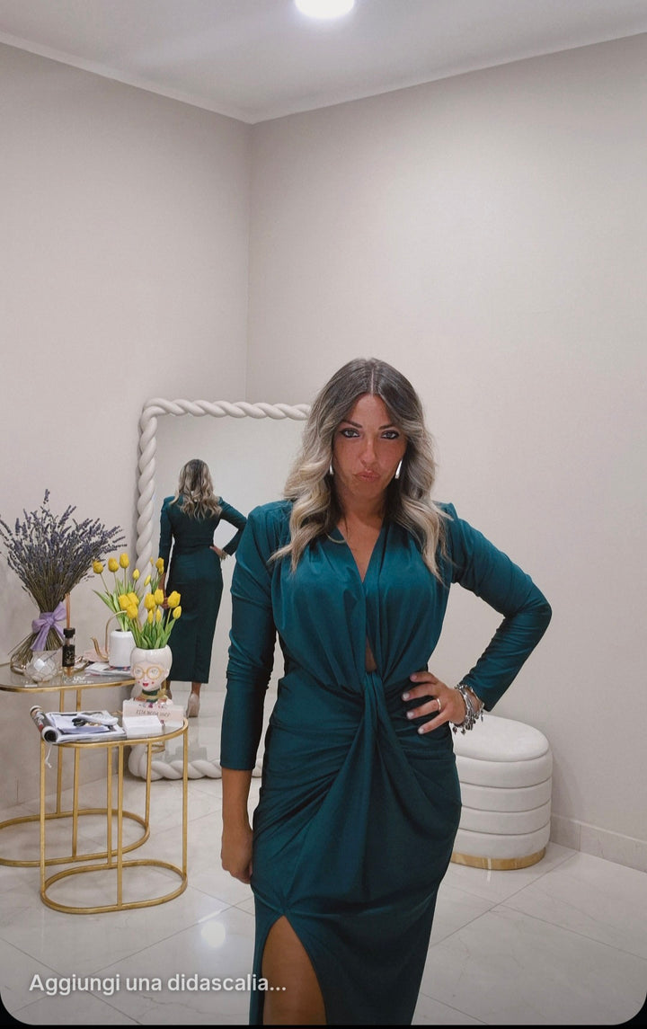 L'abito Dali è una scelta raffinata per occasioni speciali: lungo ed elegante, valorizza la silhouette con un sofisticato spacco frontale che aggiunge un tocco di fascino e sensualità. Indossandolo, catturerai ogni sguardo con classe e stile impeccabile.