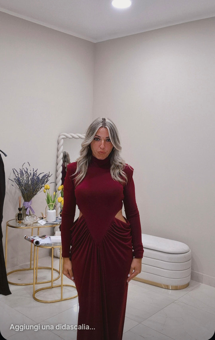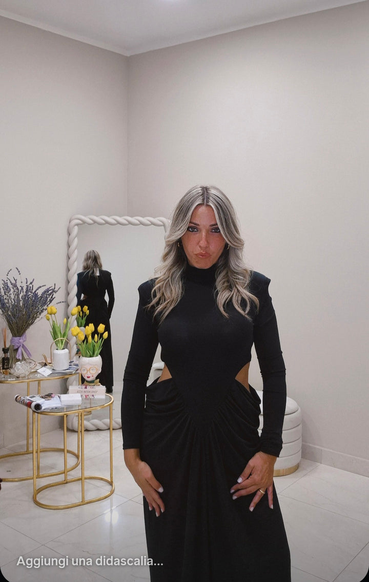 L’abito Jessica valorizza la silhouette con un design unico che mette in risalto i fianchi scoperti, accentuati da un elegante grappeggio. Le maniche lunghe e le spalline impreziosiscono la linea, garantendo un equilibrio perfetto tra audacia e raffinatezza. Un capo che assicura una presenza impeccabile in ogni occasione, catturando gli sguardi con stile e personalità.