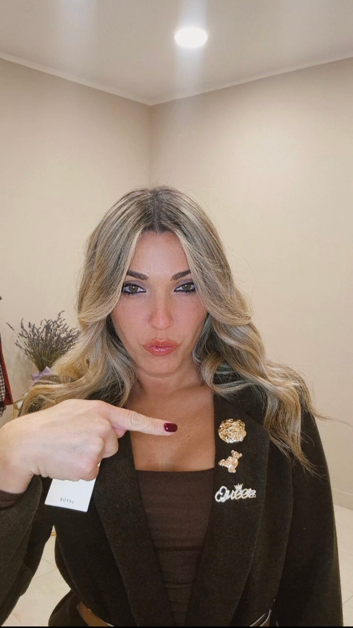 Blazer Queen: potenza e definizione in un capo essenziale. Questo blazer affascinante reinterpreta il classico cappottino corto con una silhouette contemporanea e ricercata. Le spille decorative aggiungono un elemento di carattere e personalità, mentre il cinturino strategicamente posizionato alla vita crea una definizione impeccabile che esalta le proporzioni. La costruzione pensata nei dettagli garantisce una vestibilità impeccabile e un'estetica sofisticata. Perfetto per chi ricerca un capo che unisce eleganza strutturata e design consapevole, questo blazer si adatta a molteplici occasioni con autorevolezza. Un pezzo versatile che cattura l'essenza dello stile moderno senza rinunciare alla qualità e alla raffinatezza.