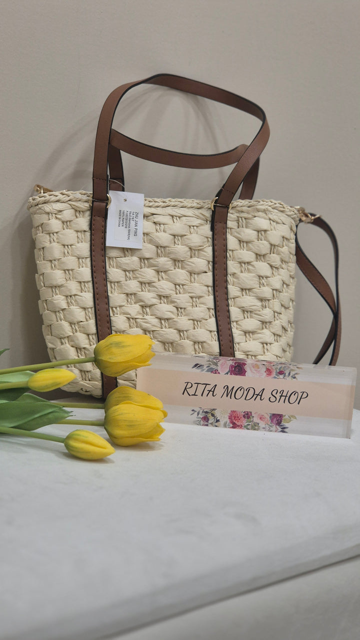 La Borsa Tania è un accessorio estivo elegante e capiente, dotata di tracolla e manici in pelle che garantiscono comfort e resistenza. Perfetta per completare il tuo outfit con un tocco di stile unico, unisce funzionalità e design raffinato per accompagnarti in ogni occasione.