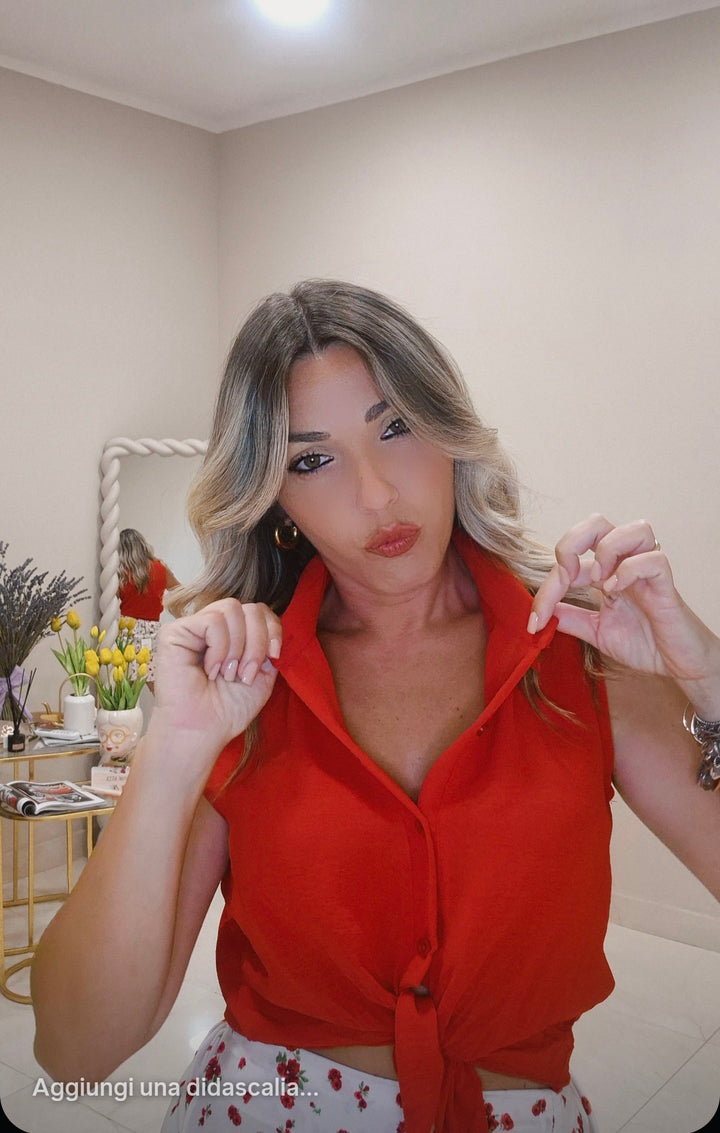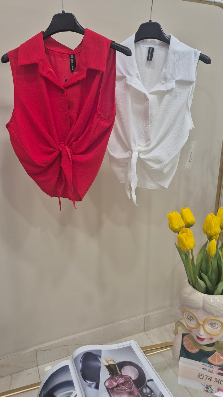 Questa camicia nodino smanicata è realizzata in un tessuto estremamente leggero, ideale per mantenere freschezza e comfort nelle giornate calde. I bottoni frontali aggiungono un tocco classico, mentre il dettaglio del nodino sulla pancia valorizza la figura con stile e modernità. Un capo versatile che unisce praticità e design raffinato, perfetto per look estivi eleganti e disinvolti.