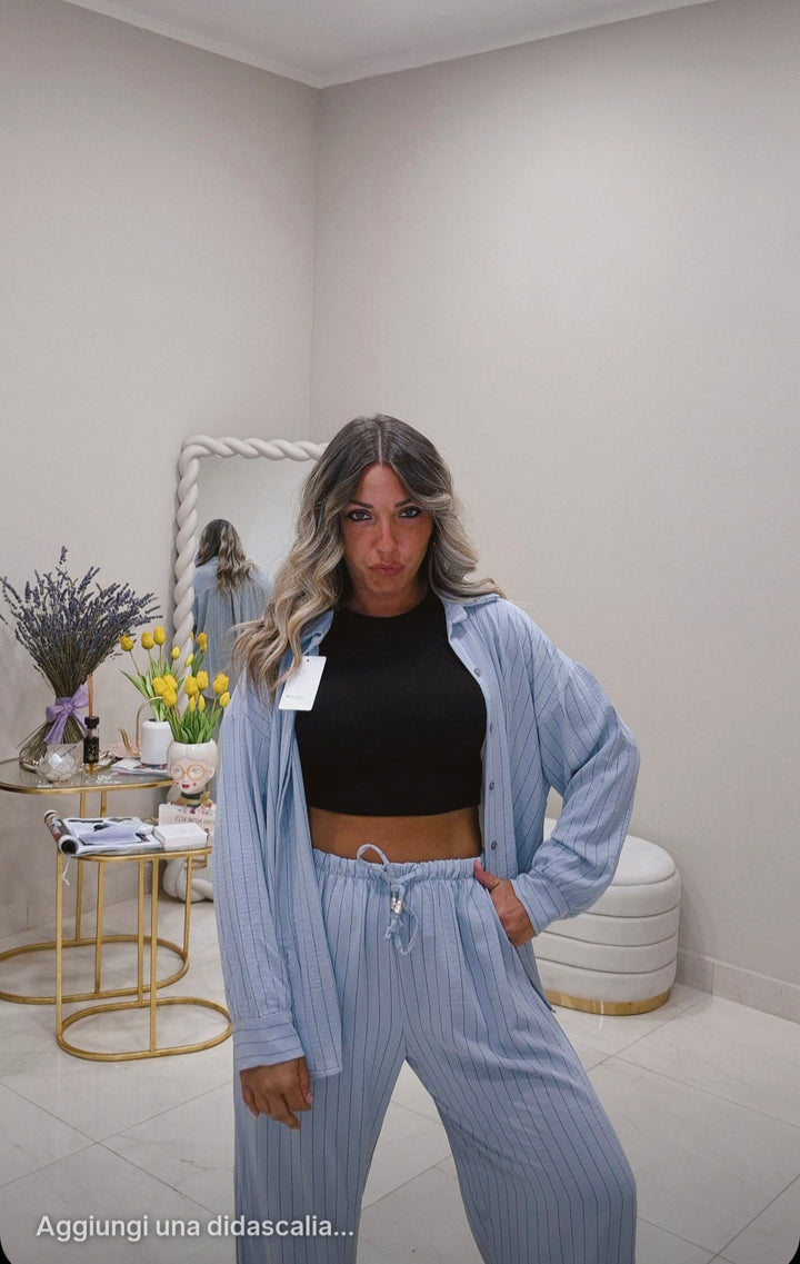 Il Coordinato Alessia è la scelta ideale per affrontare i primi freschi della stagione con stile e comfort. Composto da un pantalaccio ampio e una camicia morbida, questo set unisce praticità e eleganza casual, diventando un elemento indispensabile nel guardaroba. Perfetto per chi cerca un outfit versatile e di tendenza, capace di accompagnarti con facilità dalle giornate fresche alle serate più leggere.