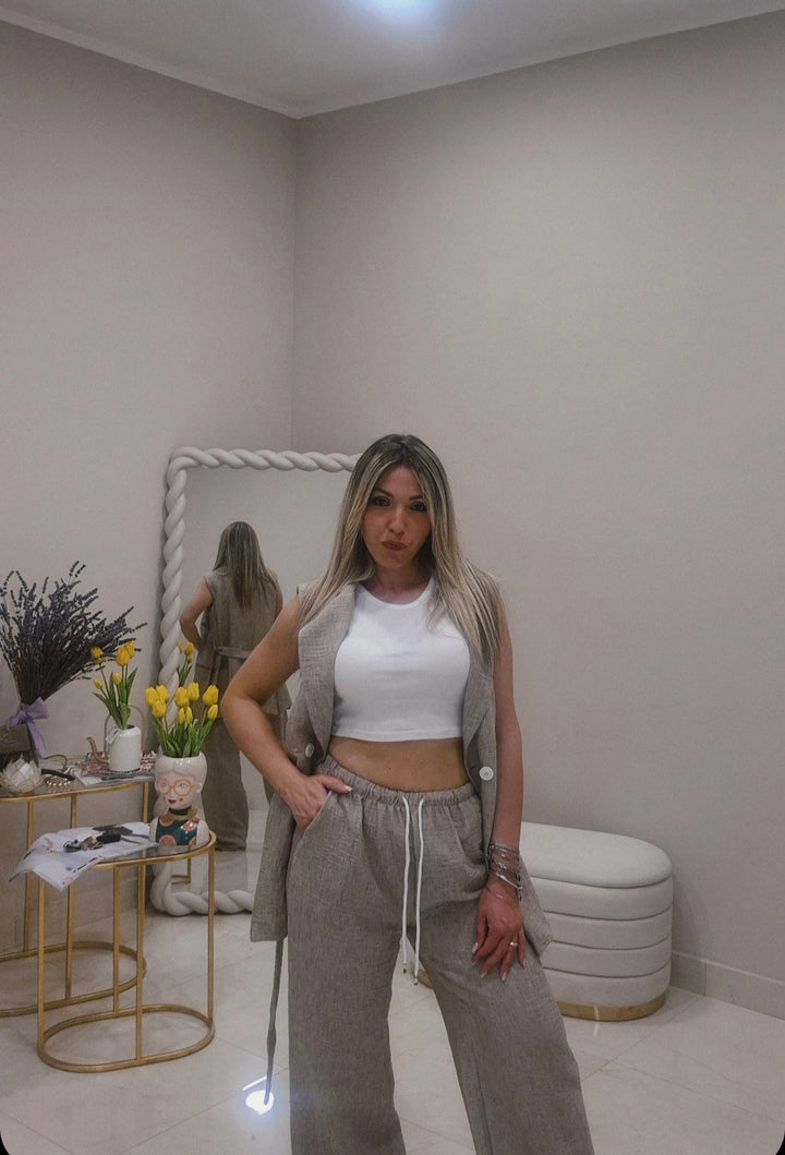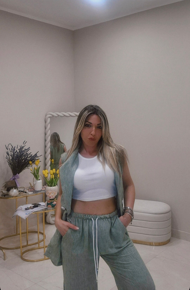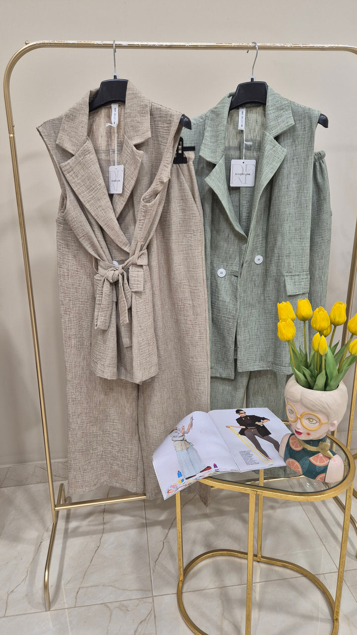 Freschezza, comfort e stile in questo Coordinato Casual. Perfetto per l'estate, il pantalone e la giacca-gilet lo rendono comodo e alla moda. Ideale per un look casual ma sempre elegante. Aggiungi questo coordinato alla tua collezione estiva!