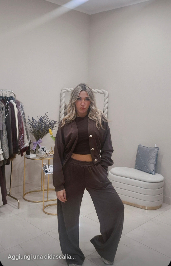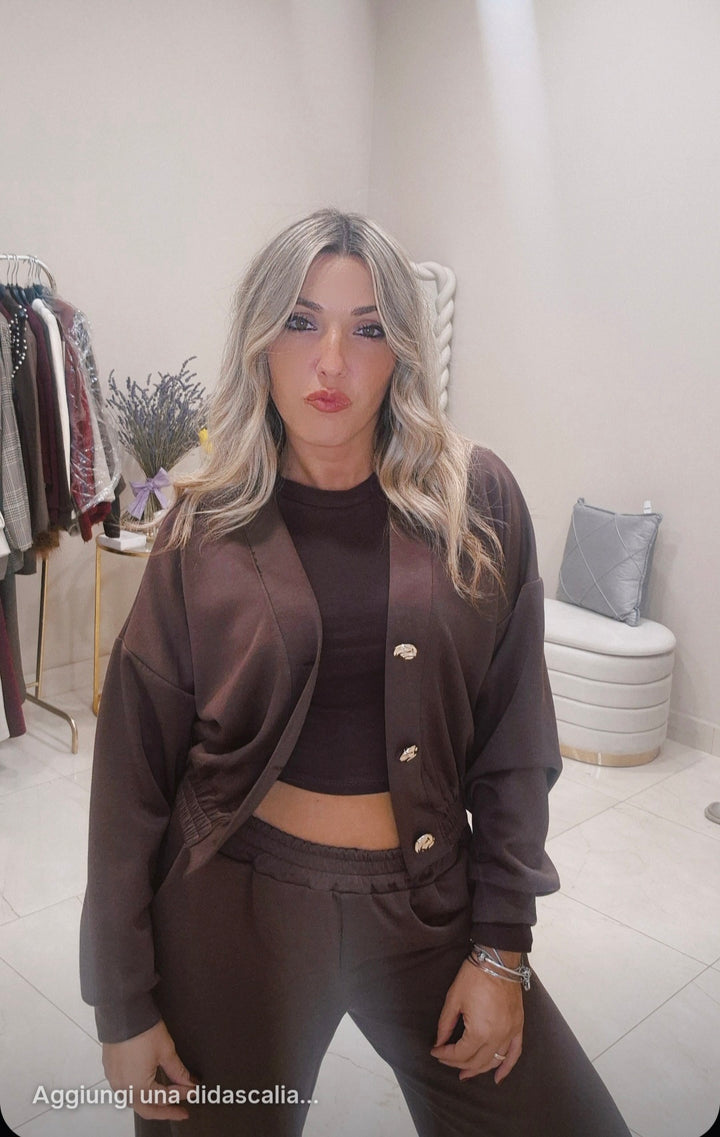 Il coordinato Fuji unisce praticità e stile con un pantalone comodo dotato di molla in vita per una vestibilità perfetta e una felpa modello giacca, ideale per chi vuole mantenere un look alla moda anche indossando una tuta. Perfetto per ogni occasione informale, garantisce comfort senza rinunciare all’eleganza contemporanea.