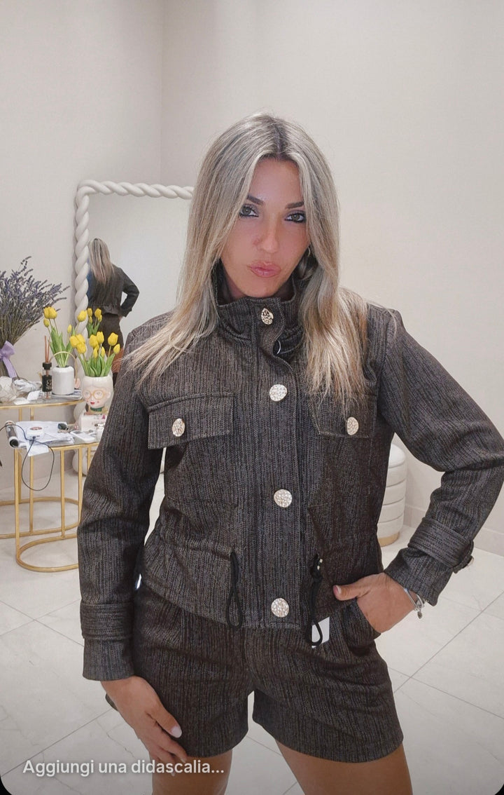 Il Coordinato Giorgy comprende un pantaloncino abbinato a una giacca giubbettino, pensati per un look elegante e sofisticato. Realizzato con materiali selezionati, questo set offre una vestibilità curata che valorizza la silhouette, garantendo comfort e stile. Perfetto per chi desidera essere sempre al passo con le ultime tendenze, unendo raffinatezza e praticità in ogni occasione.