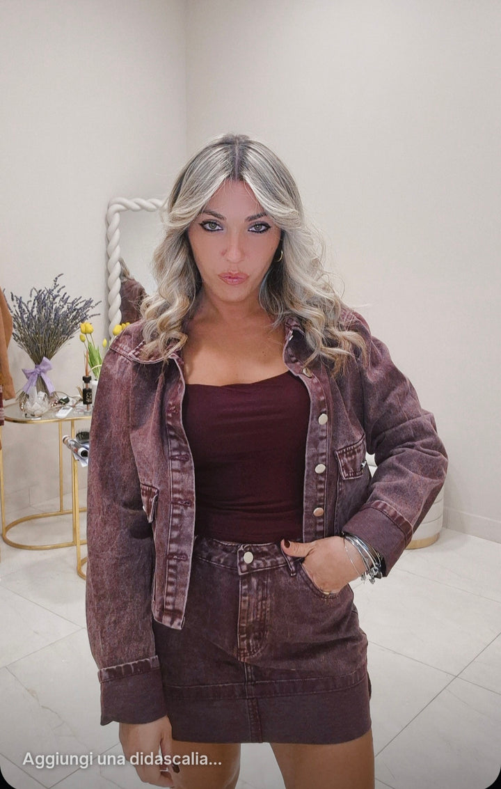 Il Coordinato Jeans unisce una gonna in denim a un giubbetto abbinato, creando un look coordinato e contemporaneo. Questo set versatile assicura uno stile sempre aggiornato e adatto a molteplici occasioni, garantendo comfort e un appeal casual-chic.