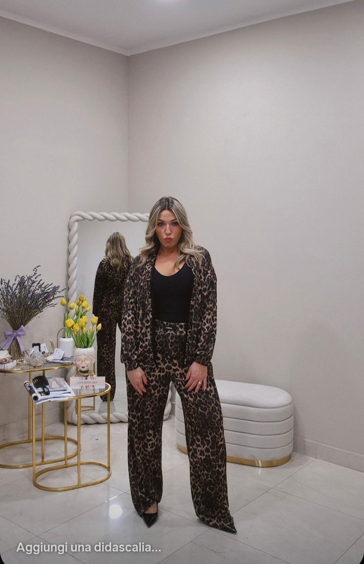 Coordinato Lumina Cleo che esprime personalità attraverso dettagli ricercati e originali. Il pantalone con molla in vita assicura una vestibilità confortevole e impeccabile, mentre il cardigan si distingue per bottoni decorativi, taschoni funzionali e delicate finiture in pizzo sui bordi. Un ensemble che cattura l'attenzione grazie alla sua unicità stilistica, ideale per chi desidera affermare la propria identità sartoriale con consapevolezza e raffinatezza, garantendo una presenza distintiva in ogni occasione.