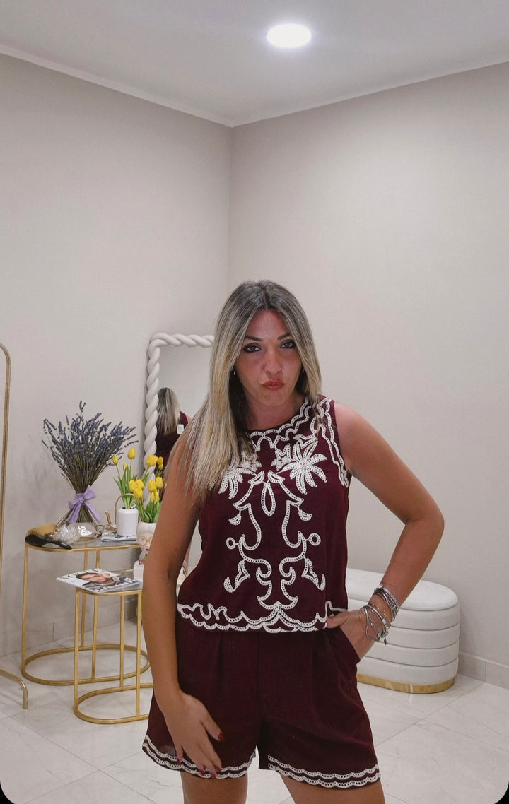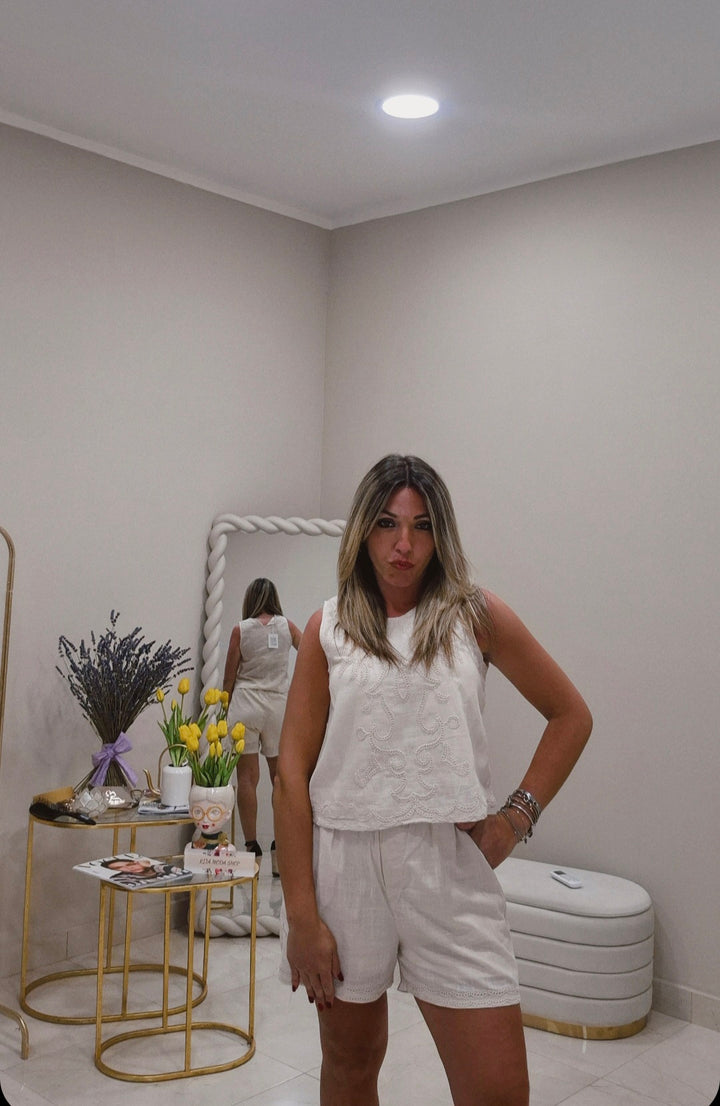 Il Coordinato Rebecca è la scelta ideale per le sere estive, combinando freschezza e stile contemporaneo. Composto da pantaloncino e top, questo completo garantisce comfort nelle giornate calde senza rinunciare a un look di tendenza, perfetto per chi desidera sentirsi sempre elegante e a proprio agio durante l’estate.
