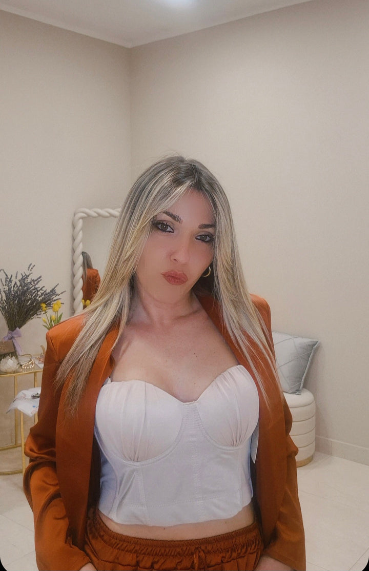 Il Coordinato VIP è la scelta perfetta per un look elegante e luminoso. Con il suo design sofisticato e raffinato, ti renderà sicuramente bellissima. Indossalo per un'occasione speciale o semplicemente per sentirti sempre chic e alla moda. Non passerai inosservata con questo coordinato unico.