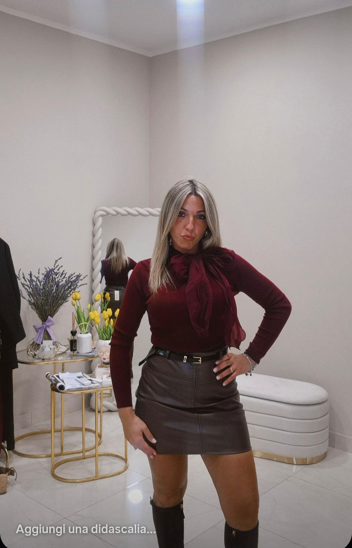 La gonna Fabry in eco pelle è pensata per esaltare le forme con una vestibilità avvolgente, donando una silhouette elegante e distintiva. Il materiale di alta qualità assicura durata e comfort, mentre il design contemporaneo garantisce un tocco di originalità che ti rende unica in ogni occasione.