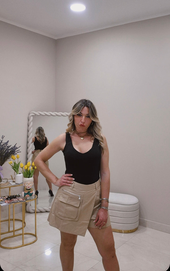 Questa gonna, con il suo pantalocino incorporato e il tascone laterale, è una scelta giovane e innovativa per le donne moderne. Combinando comodità e stile, è perfetta per chi cerca un look unico e dinamico.