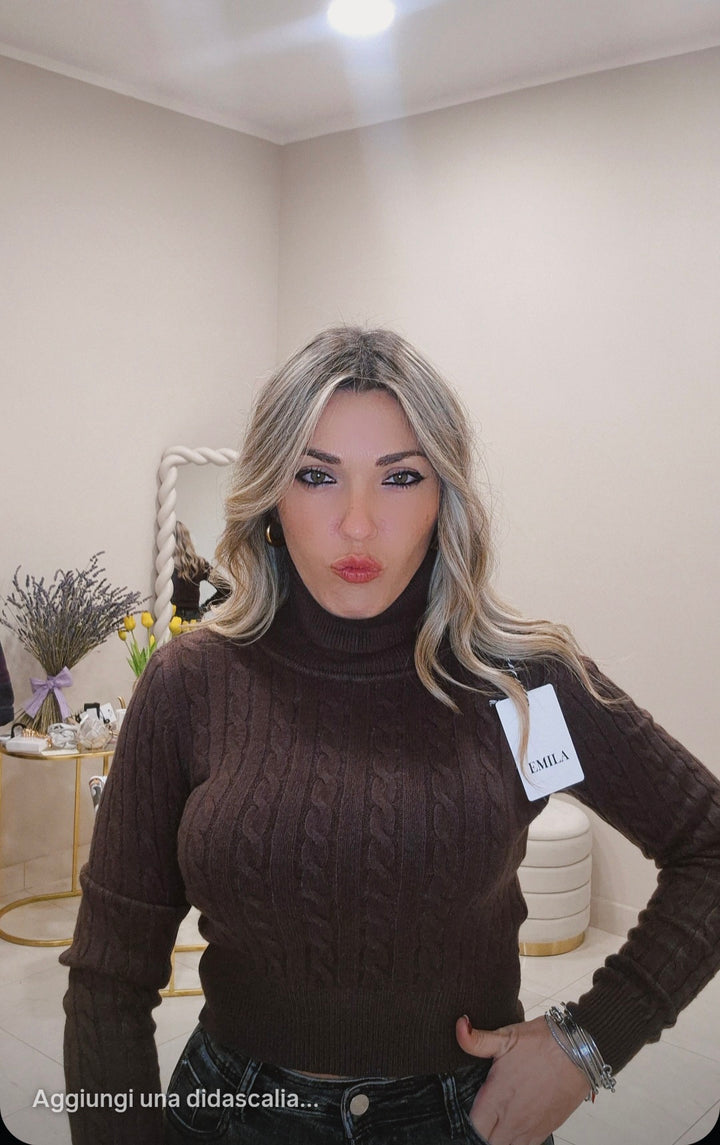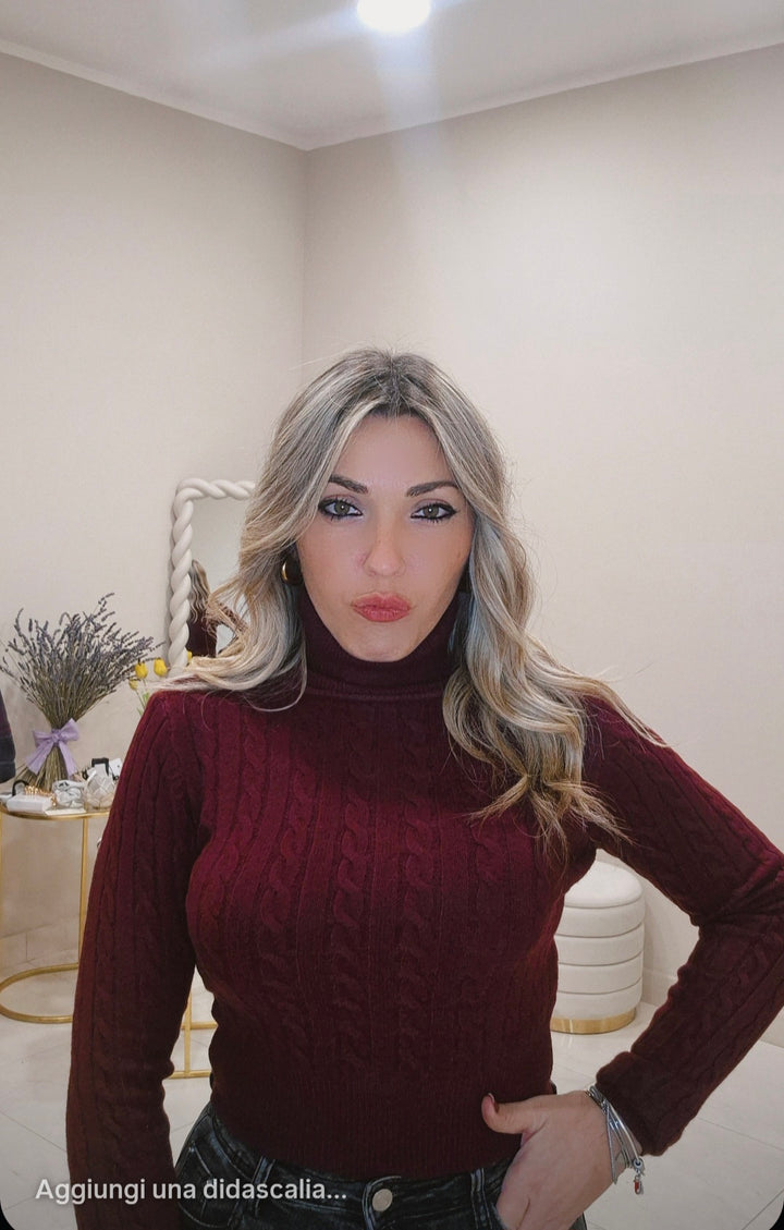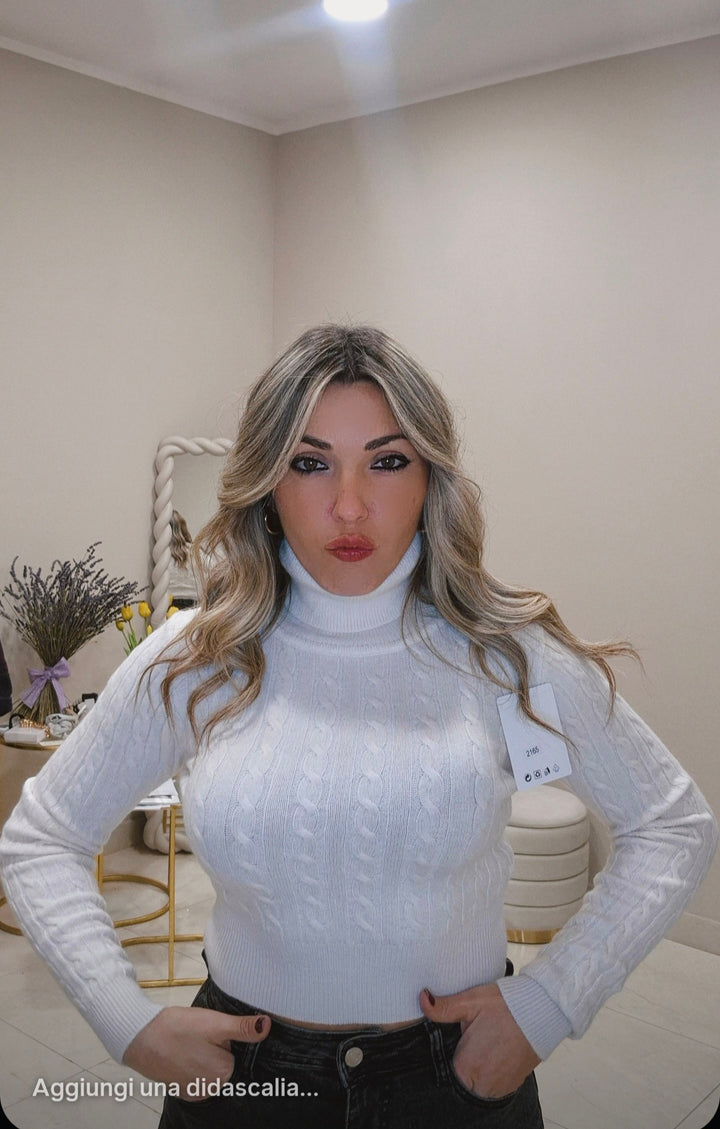 Maglia Treccia in morbidissima lana con collo alto e trama a treccia. Perfetta per l'inverno, offre un isolamento termico superiore mantenendo una straordinaria morbidezza al tatto. La lavorazione a treccia aggiunge profondità e carattere al design, mentre il collo alto garantisce protezione e comfort. Un capo essenziale per chi ricerca qualità e calore senza compromessi.