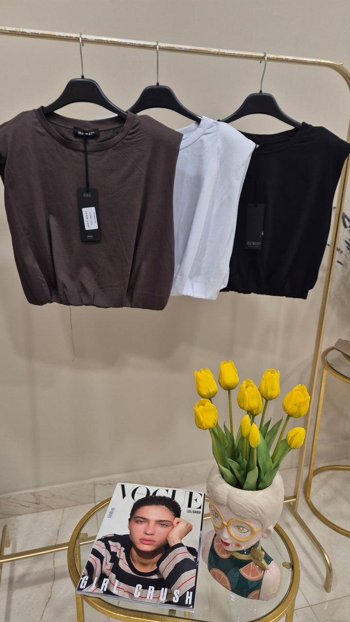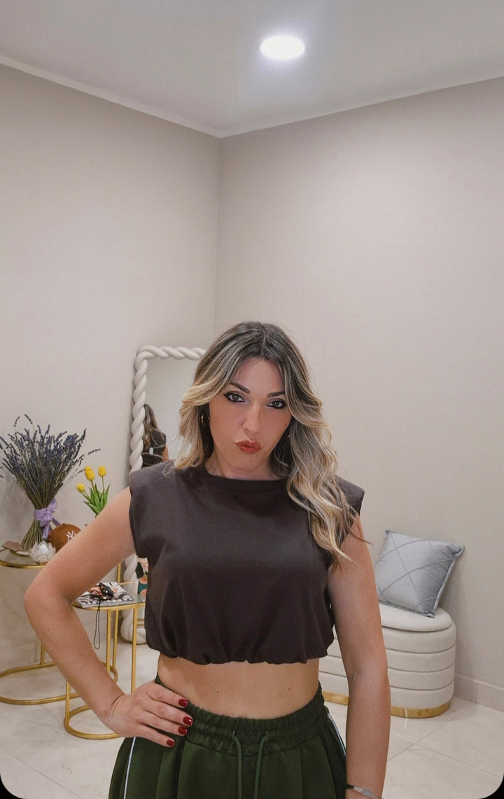 Una tshirt corta con molla e spalline - un capo alla moda perfetto per l'estate. La molla offre un look unico e le spalline un tocco di eleganza. Comoda e di tendenza, per un outfit impeccabile.