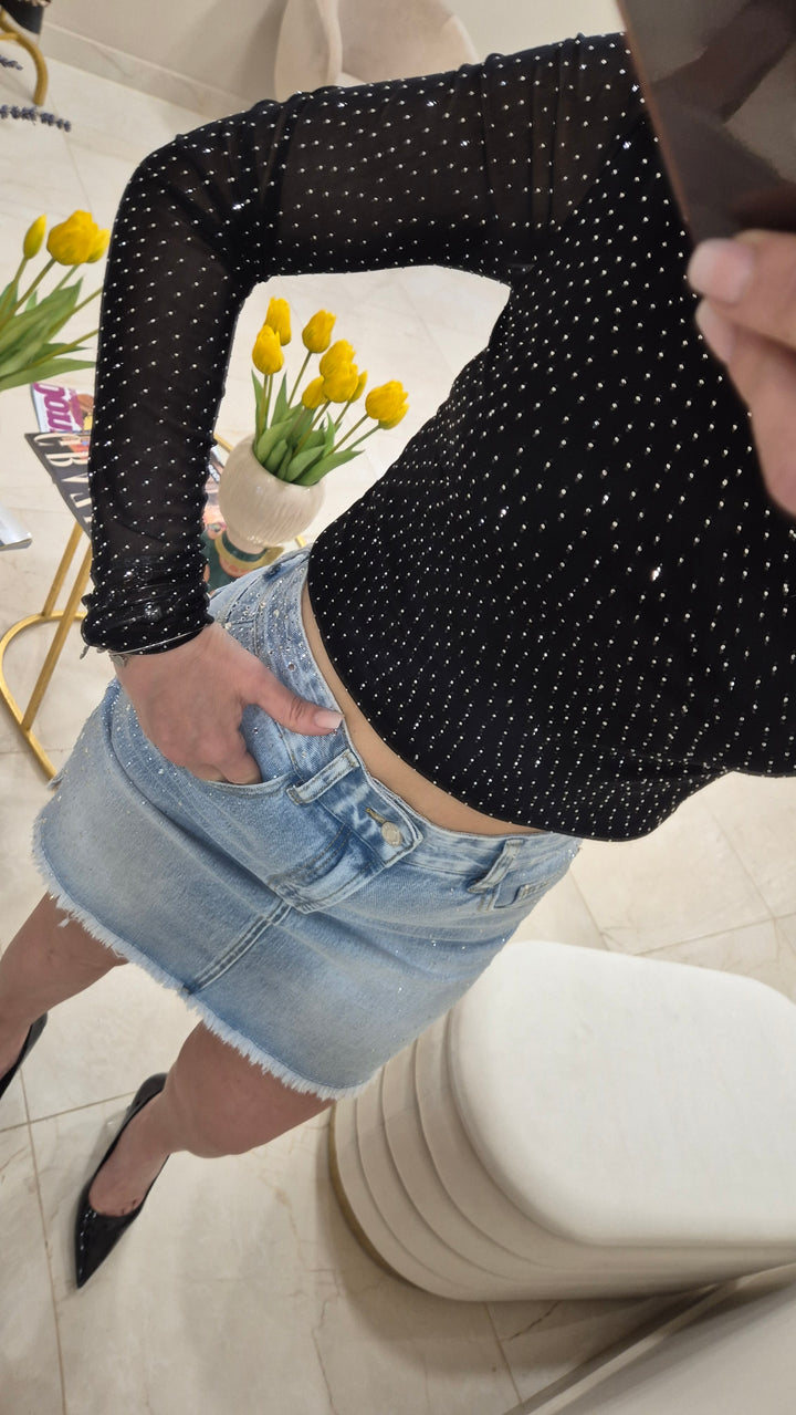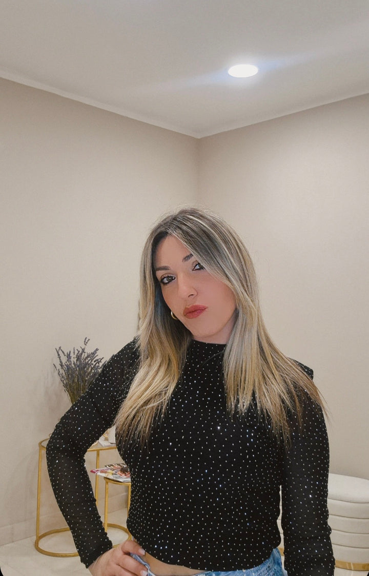 La Maglia Scintillio ti farà brillare con le sue maniche trasparenti e i brillantini, dando al tuo outfit un tocco di unicità e stile. Sarà tutto uno scintillio.
