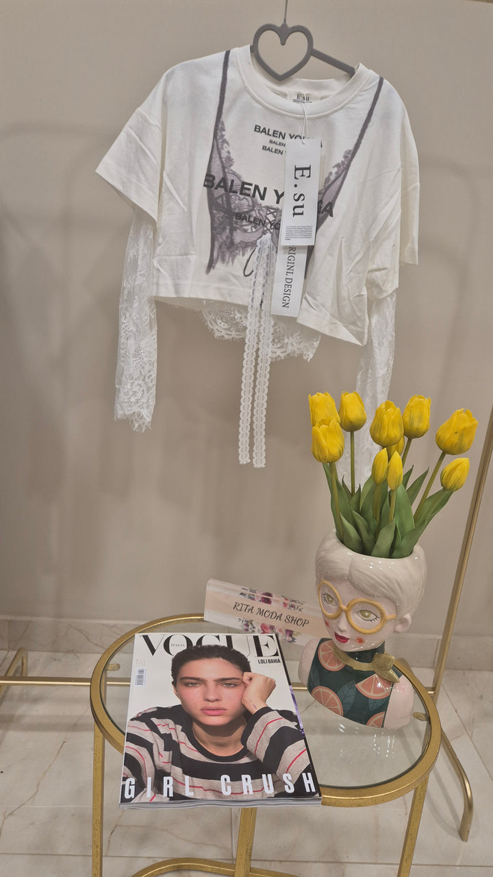 Il T-shirt Roby è una maglietta unica nel suo genere, realizzata in morbido cotone con eleganti dettagli in pizzo sulle maniche e sul lato inferiore. Ideale per chi ama unire comfort e stile.