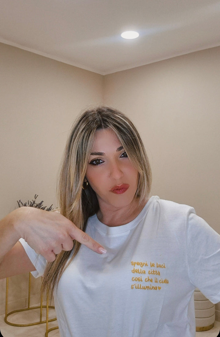 T-shirt "spegni le luci della citta' cosi che il cielo s'illumina"