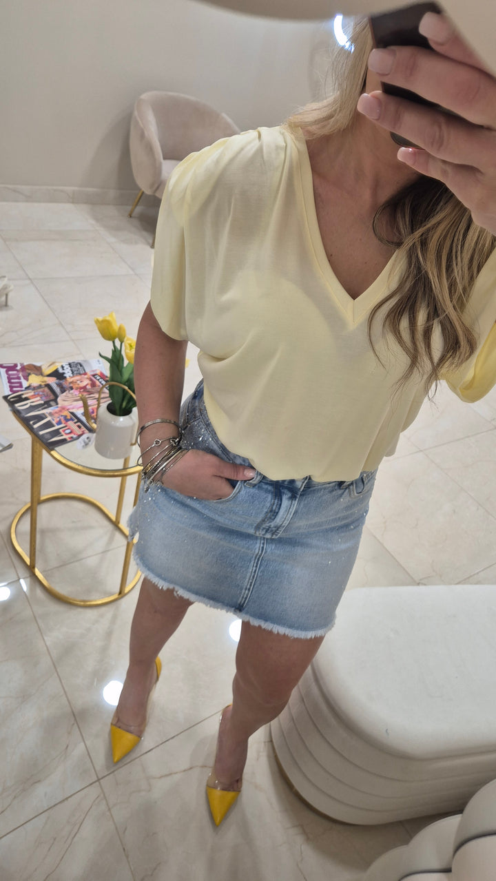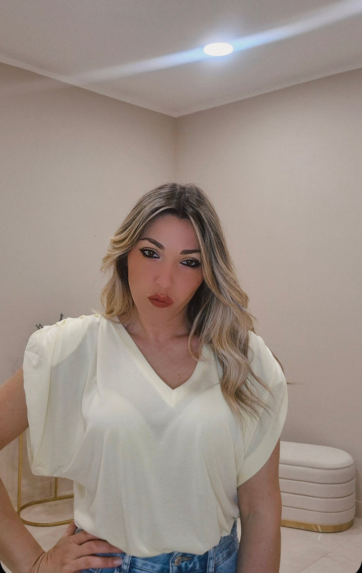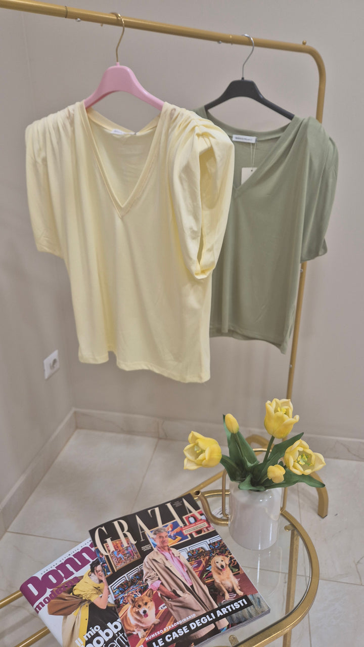 La T-shirt voilà è semplice ma unica grazie alla particolarità delle sue spalle, perfetta per rendere il tuo outfit speciale. Resta sempre alla moda e con stile con questa maglietta unica nel suo genere.