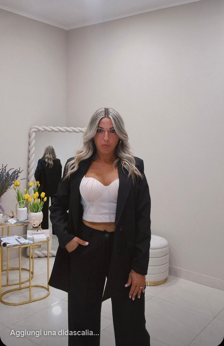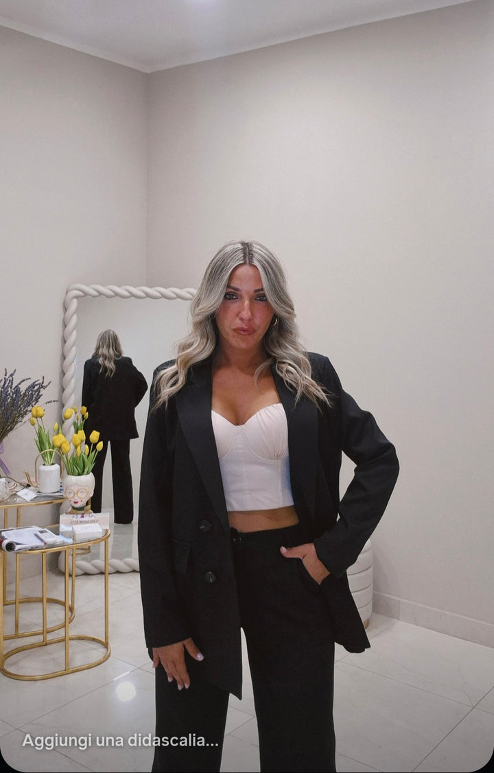 Il Tailleur Minerva combina eleganza e modernità con il suo design over, composto da pantalone e giacca. Pensato per chi desidera uno stile sofisticato senza rinunciare al comfort, questo completo versatile si adatta perfettamente a ogni occasione, garantendo un look sempre al passo con le tendenze. La vestibilità ampia conferisce un carattere deciso e contemporaneo, rendendolo la scelta ideale per chi cerca raffinatezza e praticità in un unico capo.