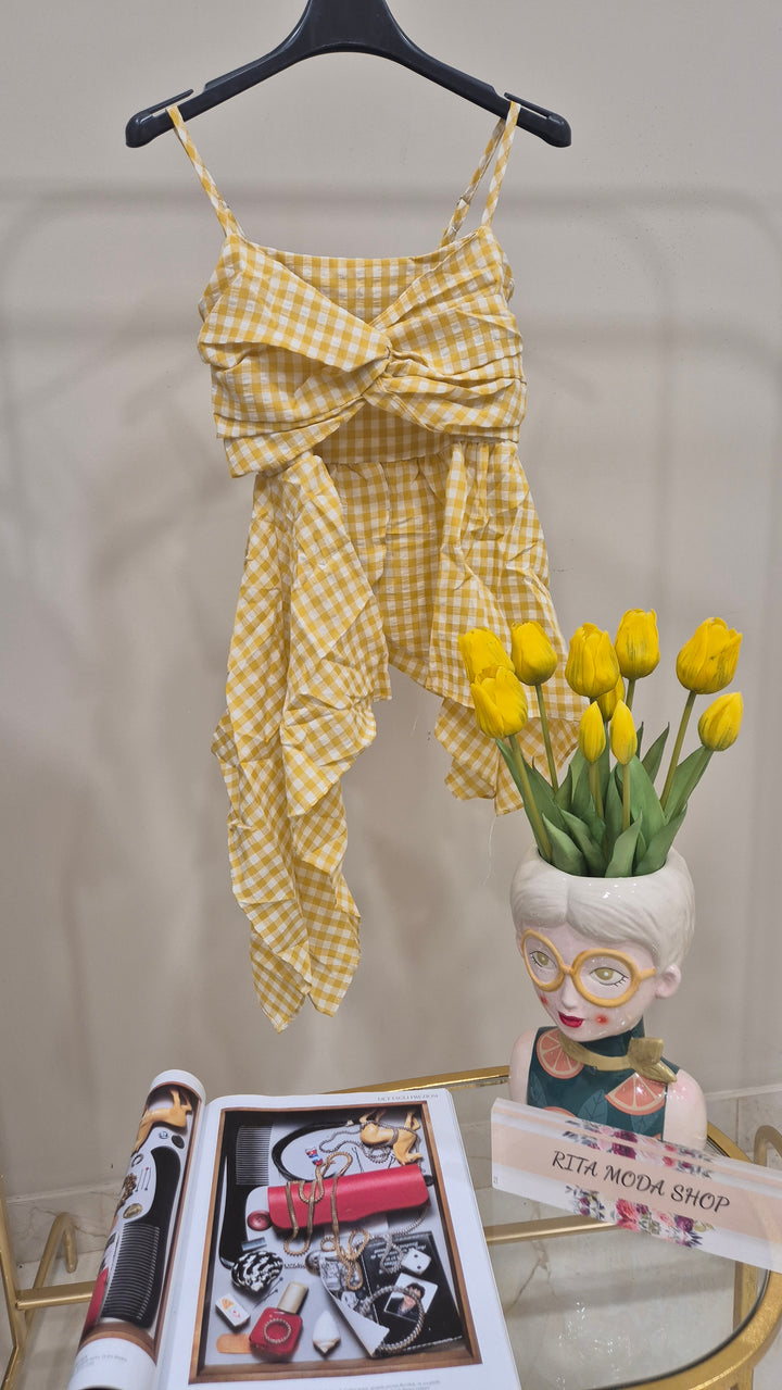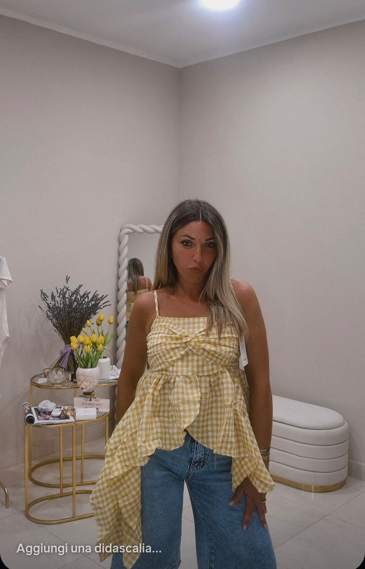 Questo top in cotone unisce comfort e stile grazie alla sua morbida tessitura naturale. Il dettaglio dei pizzi che scendono lungo i lati aggiunge un tocco raffinato e femminile, mentre la fantasia a quadretti dona un carattere fresco e versatile. Perfetto per chi cerca un capo distintivo e di qualità, ideale da abbinare sia a look casual che più ricercati.
