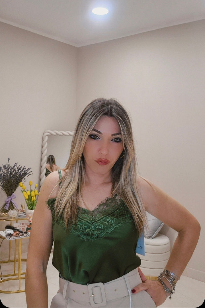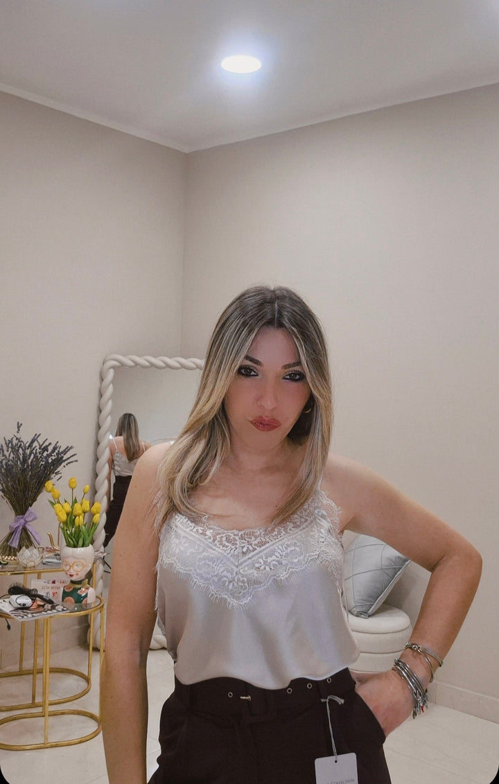 Questo raffinato Top Sirena unisce la lussuosa morbidezza del raso con delicati dettagli in pizzo, creando un capo di straordinaria eleganza. La combinazione di tessuti pregiati esalta la silhouette femminile con sofisticata sensualità, rendendolo perfetto per occasioni speciali o per elevare un outfit serale con un tocco di ricercata raffinatezza.