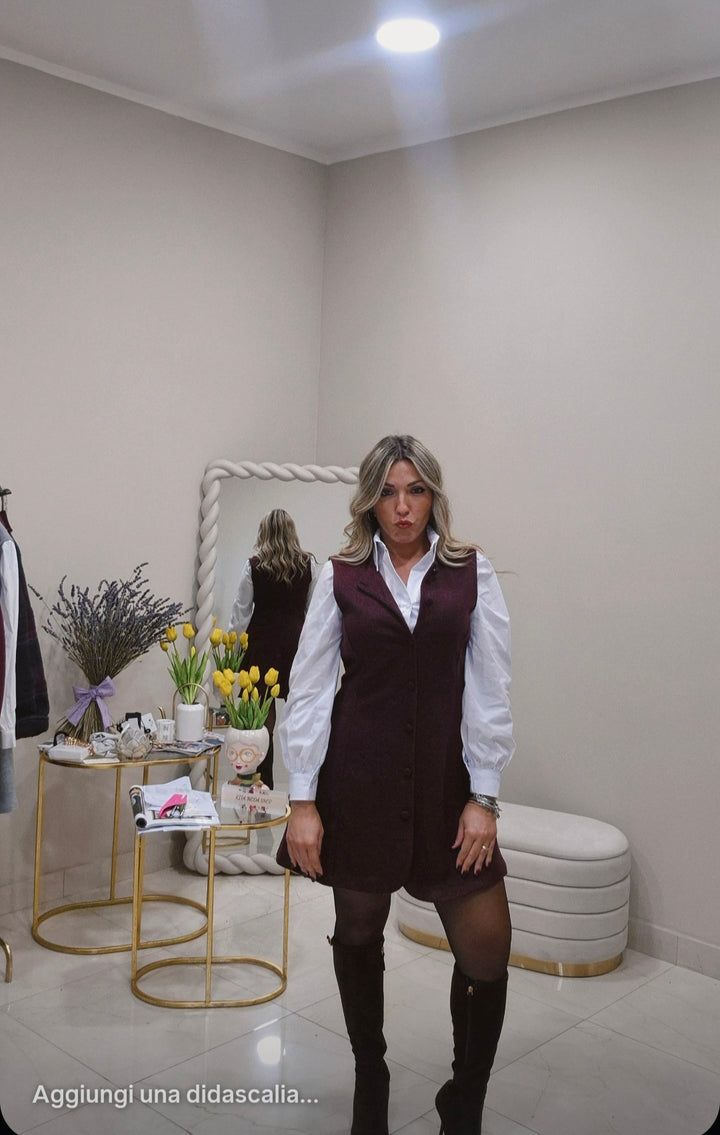 Vestitino Cheri in lanetta morbida con silhouette a campana che regala movimento e eleganza. La combinazione con la camicia bianca integrata crea un look raffinato e versatile, perfetto per occasioni speciali o per chi desidera un'alternativa sofisticata al classico abito. La lanetta garantisce comfort e una caduta impeccabile, mentre il taglio svasato assicura una vestibilità lusinghiera. Un capo essenziale per chi non scende a compromessi con lo stile.