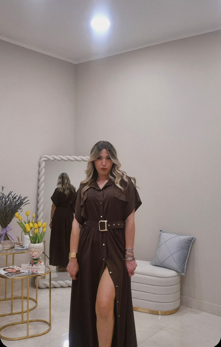 Vestito Flora, un elegante abito lungo progettato per le giornate estive più calde. La chiusura frontale con bottoncini e la cintura in vita creano una silhouette definita e femminile. Realizzato in tessuto leggero e traspirante, garantisce freschezza e comfort senza compromettere lo stile, per un look raffinato in qualsiasi occasione estiva.