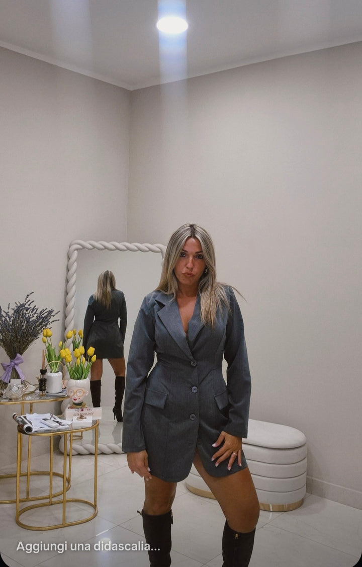 Questo vestito corto modello giacca unisce eleganza e moderno design per offrire un capo sofisticato e sempre alla moda. La linea strutturata valorizza la silhouette, garantendo un look raffinato perfetto sia per occasioni formali che per momenti più informali. Realizzato con materiali di qualità, assicura comfort senza rinunciare allo stile.