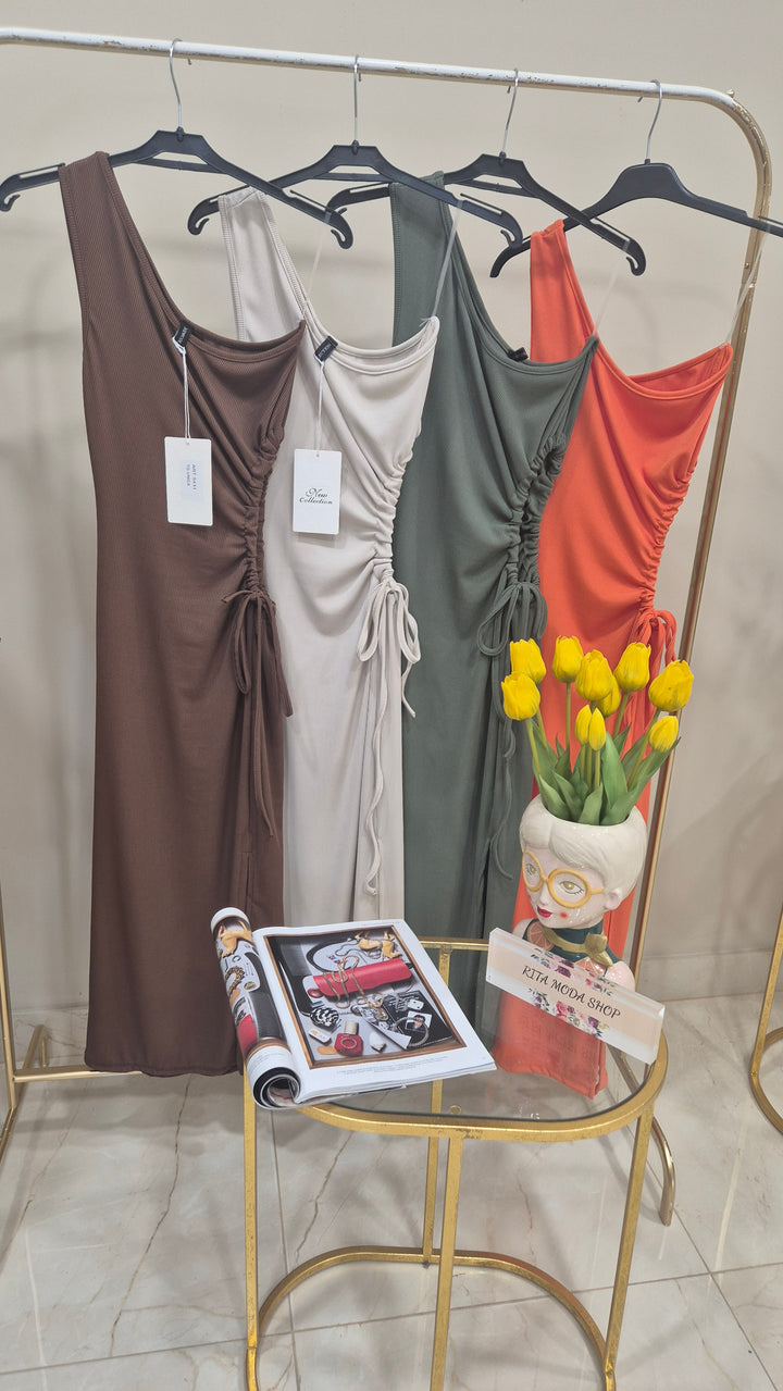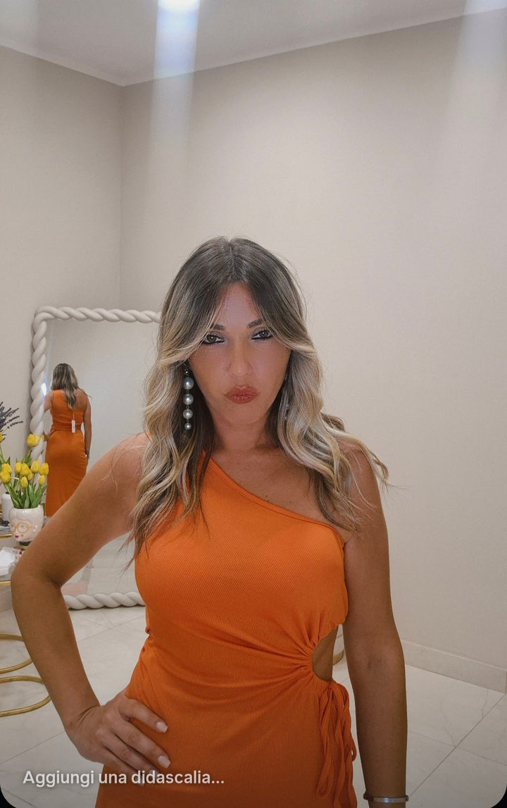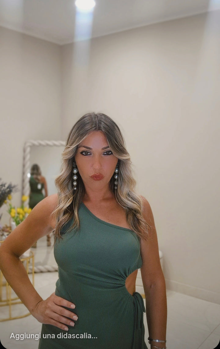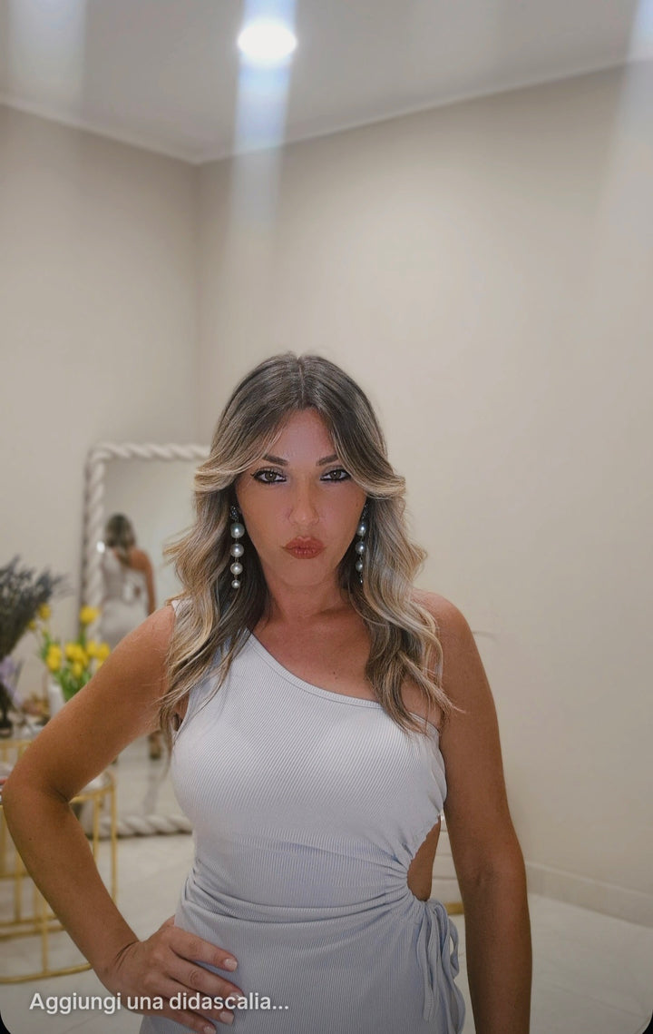 Il Vestito Intense è un capo sofisticato e seducente, caratterizzato da una linea monospalla che valorizza la silhouette. Lo spacco frontale aggiunge un tocco di eleganza e movimento, mentre i dettagli regolabili con laccetti sui fianchi permettono di personalizzare la vestibilità, esaltando la sensualità in modo raffinato. Perfetto per chi cerca un abito distintivo