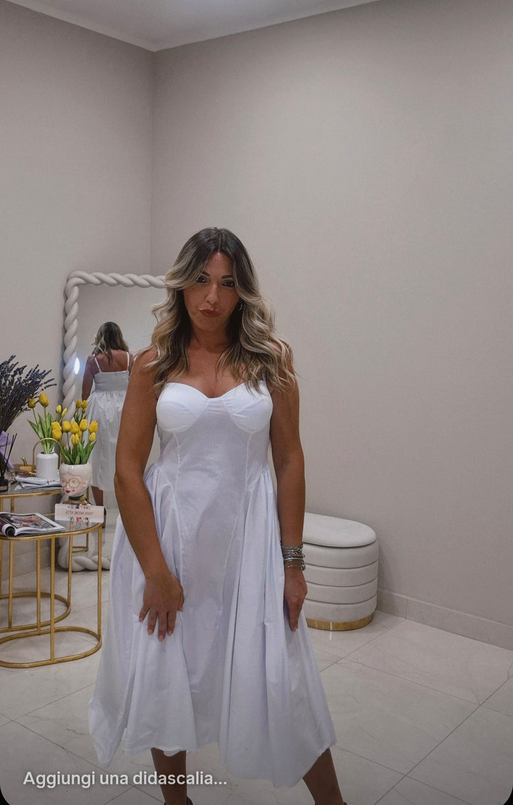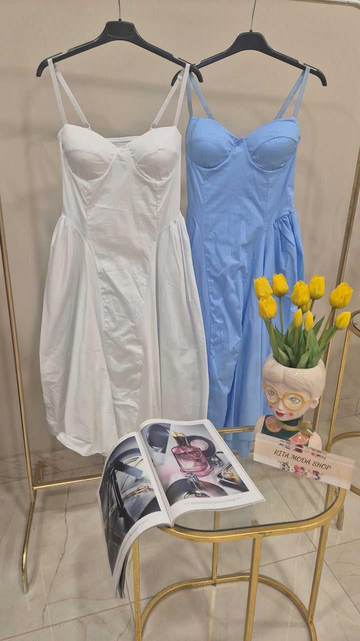 Il vestito Kendy è pensato per le giornate estive, con coppe imbottite che offrono sostegno e definizione al décolleté. La silhouette è valorizzata da una vita stretta che enfatizza le forme, mentre la gonna a campana dona movimento e leggerezza. Questo modello combina comfort e femminilità, ideale per chi desidera un look elegante e fresco durante la stagione calda.